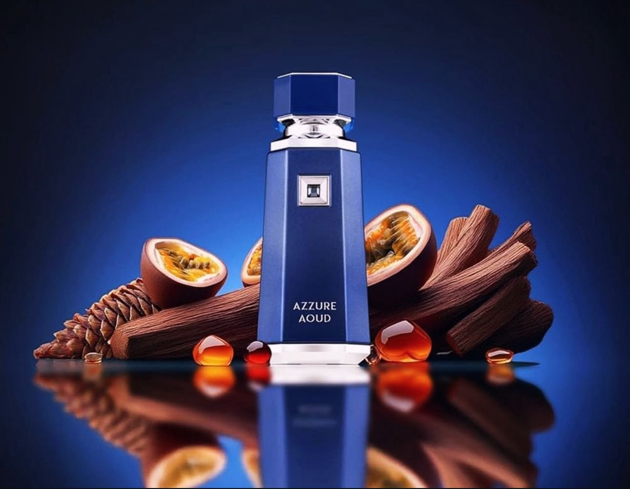 Azzure Oud, açılışta çarkıfelek (passion fruit), meyve notaları, gül ve safran ile yoğun, egzotik ve sıcak-meyvemsi bir başlangıç yapar. Tropikal meyve havası; gül ve safranla birleşince hem lüks, hem de dikkat çeken bir aura oluşturur.